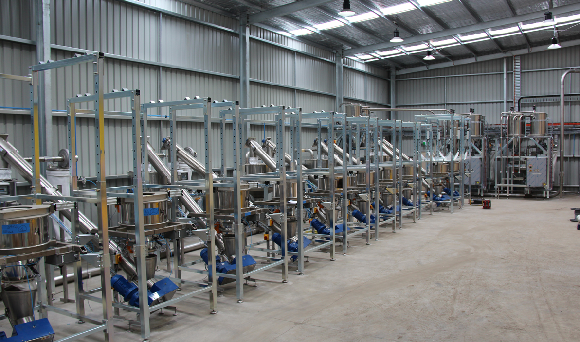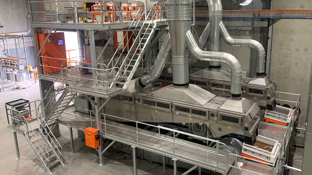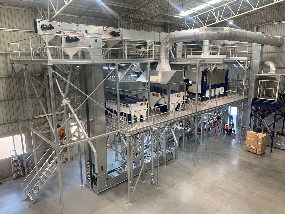 Tropical grass seed coating and mixing facility